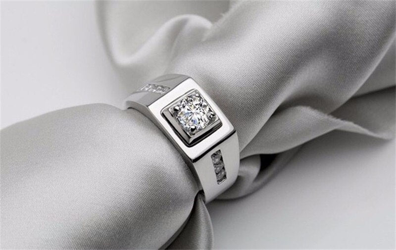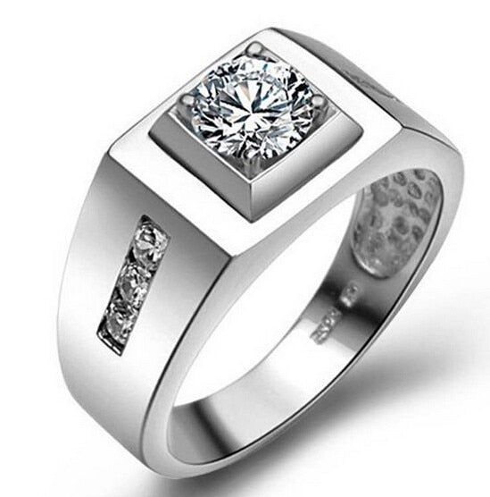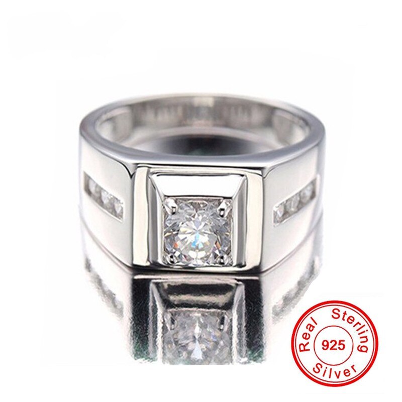 Vecalon Solitaire Male ring 925 Sterling silver AAAAAZircon Cz Engagement Wedding band rings For men Fine Finger Jewelry