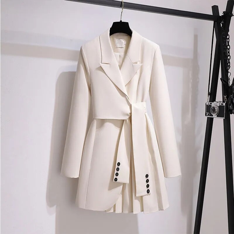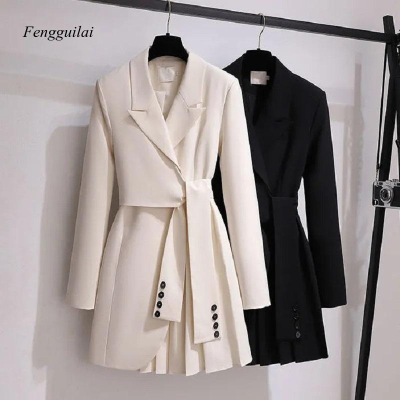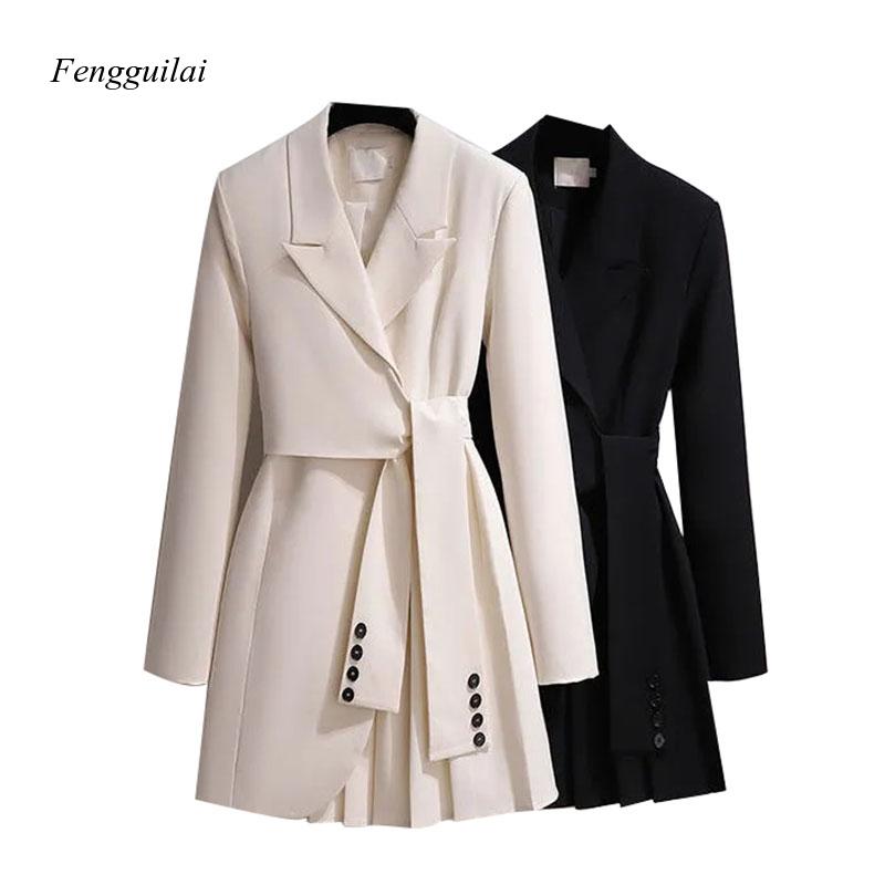 Fashion Trench Coat Dress Women 2023 New Spring Autumn Windbreaker Coat Female Oversize 4Xl Black White Belt Blazer Vintage