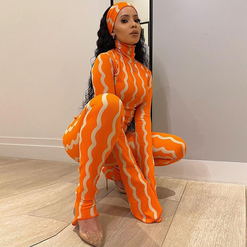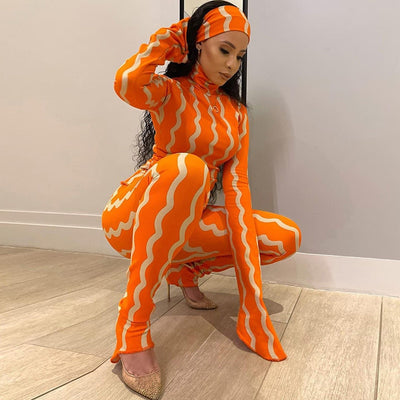 Autumn Stand Collar Stripes Print Women Long Sleeve Pencil Jumpsuit Suit Active Wear Tracksuit Two Piece Set Fitness Outfits