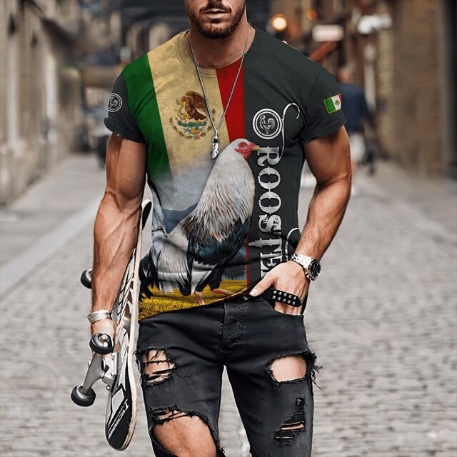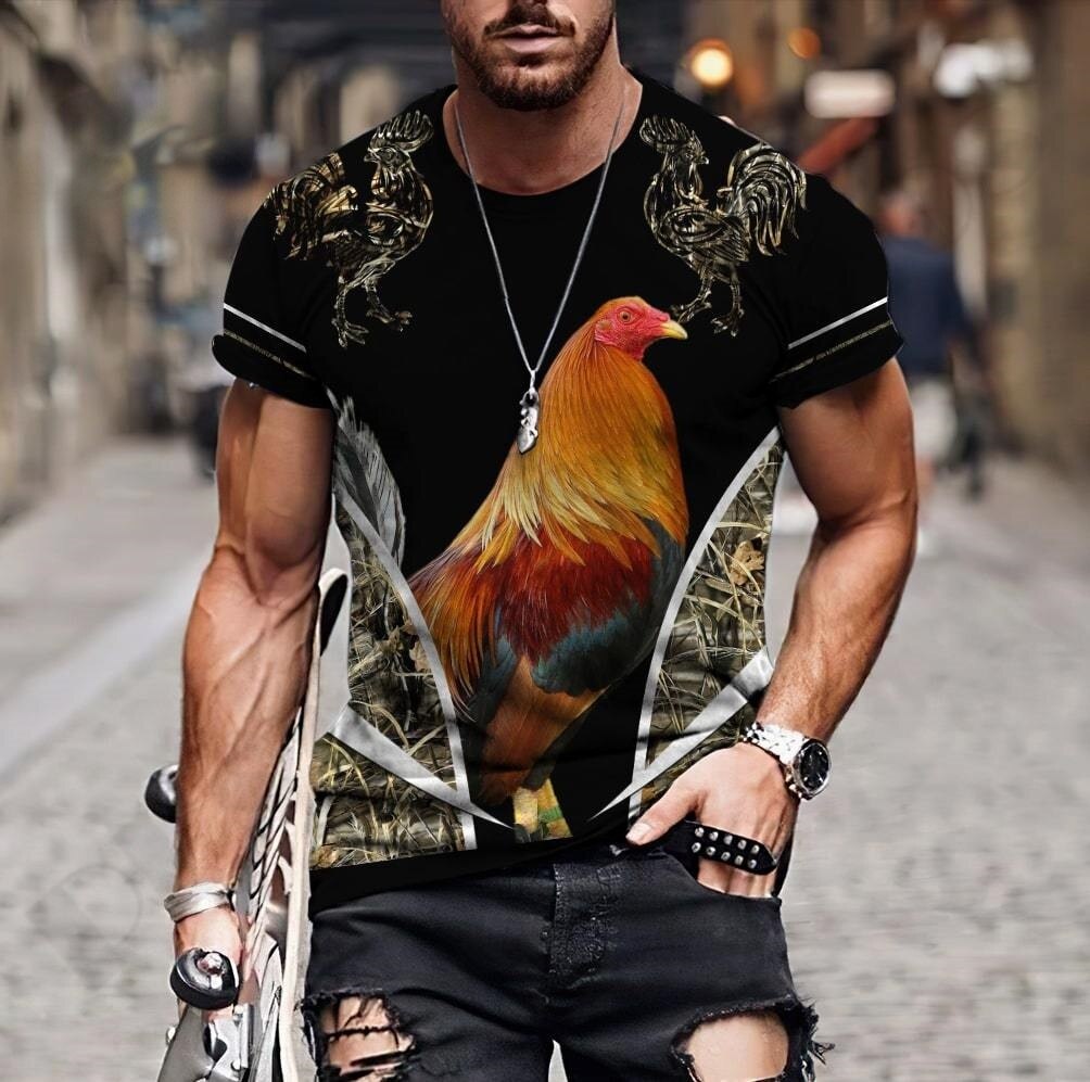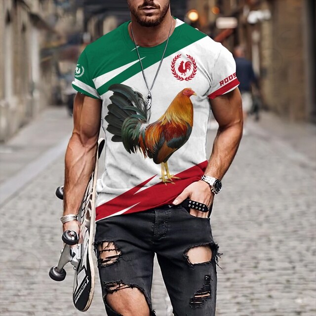 Big Rooster Animal 3D Print T Shirt Men's Loose Short Sleeve O Neck Shirt Oversized Top Summer Dress