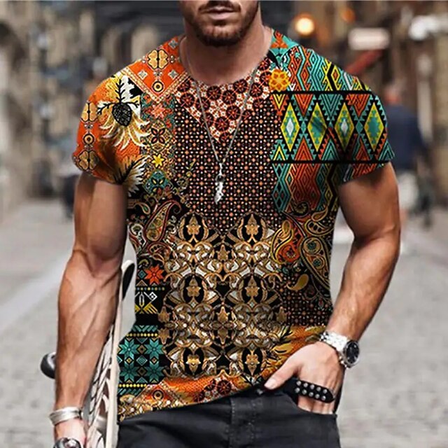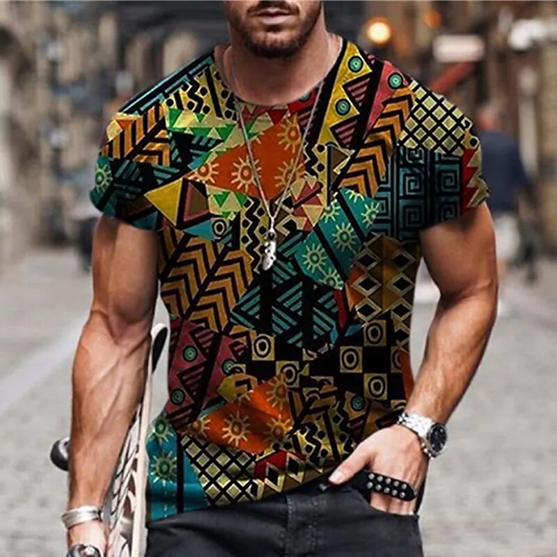 Summer New Men's T-Shirt Top Men's Top Tribal 3D Print Round Neck Holiday Harajuku Short Sleeve 2023 Casual Men's Funny Dress